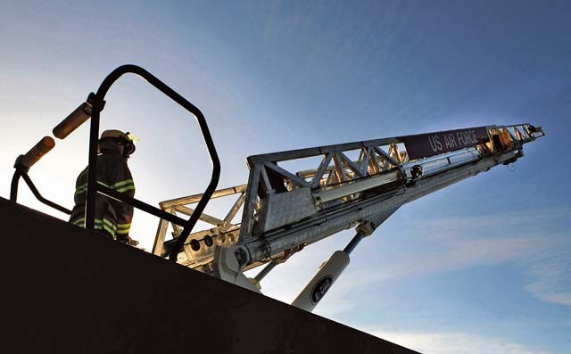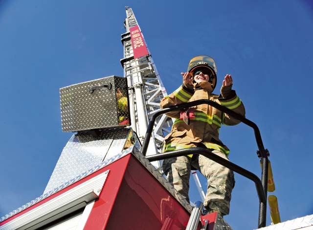 Photo by Senior Airman Damon Kasberg<br>Staff Sgt. Stephen Kraus, 435th Security Forces Squadron Battlefield Leader Assaulter Course Integrated Combat Essentials breacher, demonstrates how to break through a door. Kraus showed the attendees a variety of breaching equipment that the 435th SFS is trained to use.Photo by Airman 1st Class Larissa Greatwood<br>Senior Airman Mark Morris, 86th Civil Engineer Squadron fire truck operator, climbs to the top of a fire truck ladder to demonstrate its capability during Job Shadow Day. The 86th CES firefighters train with partner nations to enhance their skills for real-world emergencies.Photo by Airman 1st Class Larissa Greatwood<br>Senior Airman Mark Morris, 86th Civil Engineer Squadron fire truck operator, answers Ramstein Middle and High School students’ questions. Students had the opportunity to learn about the different Air Force careers by touring facilities and receiving hands-on lessons.Photo by Airman 1st Class Larissa Greatwood<br>Airman 1st Class Trey Murray, 86th Civil Engineer Squadron firefighter, shows a student how to properly secure and spray a fire hose. Ramstein Middle and High School students had the opportunity to learn about the different careers the Air Force has to offer by touring facilities and receiving hands-on lessons.Photo by Airman 1st Class Larissa Greatwood<br>Senior Airman Mark Morris, 86th Civil Engineer Squadron fire truck operator, demonstrates how firefighters maneuver a fire truck’s ladder in the event of an emergency during Job Shadow Day May 8 on Ramstein. The 86th CES firefighters train with partner nations to enhance their skills for real-world emergencies.