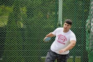 Higby moves his 270 pound frame through the shot and discus circles with great athleticism. Even though the day was miserable and the ring slippery, Higby did what all the great ones do, focused on what needed to be done in spite of the conditions.