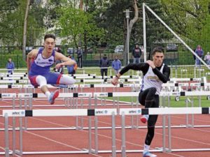 “I think it is pretty fun” competing against the big schools, he said from under the Baumholder fans super umbrella in the stands. “I like the competition it gives me because it sort of pushes me towards something. But it is hard to jump in weather like this because the rain is always coming down and it is hard to focus and I have to try my hardest to pay attention to what I am doing.” Huxtable’s jump was a foot less than his overall best and he says that in order to win the Euros, he feels he needs to top 44 feet “which is what I am aiming for.” His ultimate goal is to jump in college.
