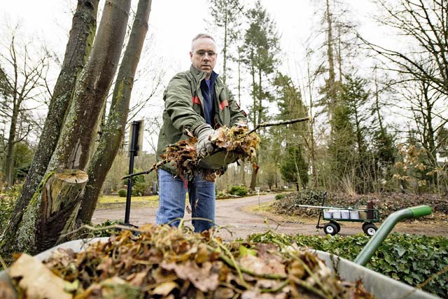 Chief Master Sgt. Philip Leonard, Ramstein Area Chief’s Group member, transfers leaves into a wheel barrow while cleaning up the American Kindergraves March 10 in Kaiserslautern. The Ramstein Area Chief’s Group has taken care of the Kindergraves with the German-American Women’s Organization since the 1980s.