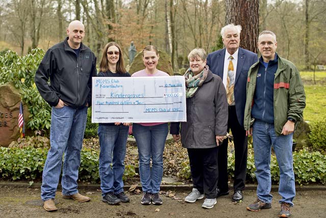 Moms Offering Moms Support Club of Kaiserlsautern donates $400 to the Ramstein Area Chief’s Group and German-American Women’s Organization at the American Kindergraves March 10 in Kaiserslautern. The money supports the organizations’ ability to maintain the Kindergraves lease and ensure it is clean.