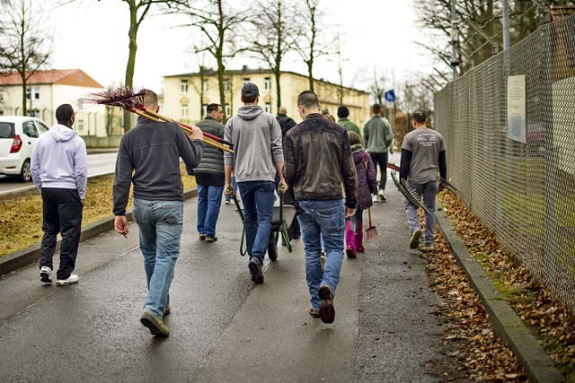 Kaiserslautern Military Community members carry gardening tools to the American Kindergraves March 10 in Kaiserslautern. Airmen from the 86th Vehicle Readiness Squadron kicked off the bi-weekly cleaning of the Kindergraves for the season.