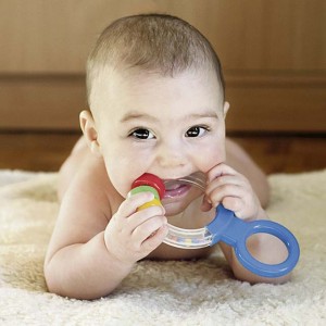 According to the American Academy of Pediatrics, the safest approach to managing your infant’s teething pain, as well as soothing their tender gums, is the use of a teething ring chilled in the refrigerator. Also, using a clean finger to gently rub or massage the baby’s gums for 2 minutes at a time may bring temporary relief from teething pain.