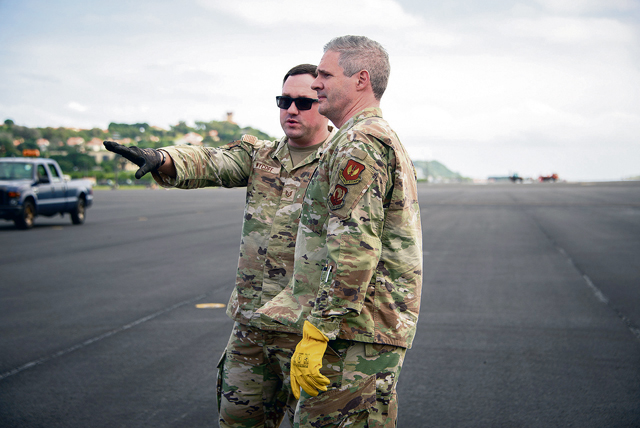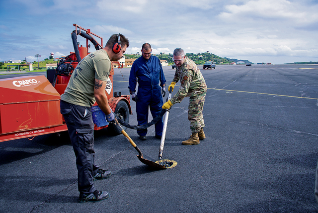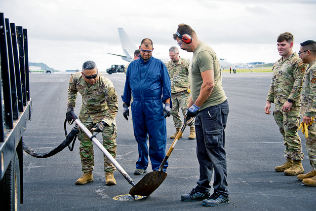 Col. Boyd and Chief Gonzalez put their gloves on and joined Lajes Field CE squadron to make sure the flightline was in top shape before the start of winter season. The 765th Air Base Squadron “Dirt Boyz” plays a crucial role behind the scenes on airfield maintenance and base construction. The airfield and base are kept in peak shape because of their dedication, which enables the 65th Air Base Group to deploy aircraft quickly and effectively. (U.S. Air Force photo by Ms. Cristina Oliveira)