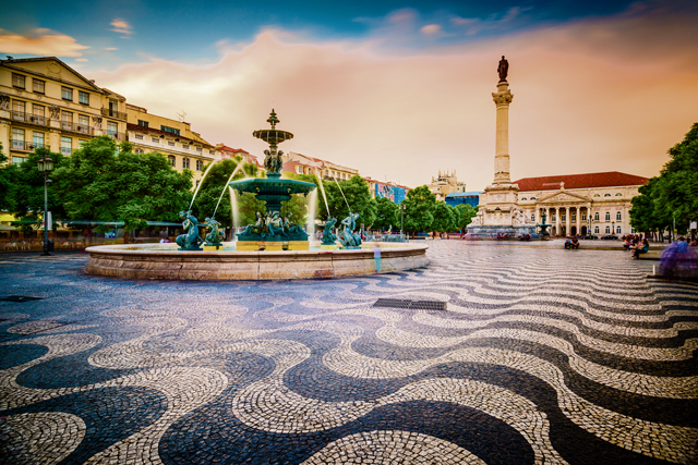 Lisbon,,Portugal,Cityscape,At,Rossio,Square.
