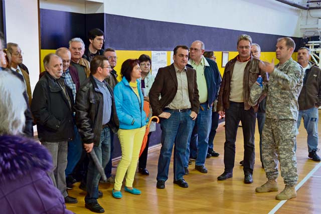 Lt. Col. Lars Zetterstrom, commander of U.S. Army Garrison Kaiserslautern, hosted roughly 30 members of the councils of the Union Community Enkenbach-Alsenborn and its associated communities for a tour of Sembach Kaserne April 27.