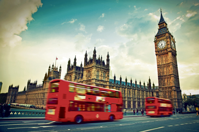 London,,The,Uk.,Red,Bus,In,Motion,And,Big,Ben,