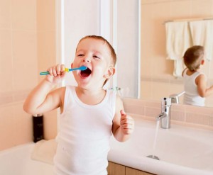 • Once a child’s teeth come in, brush them twice a day using fluoridated toothpaste.