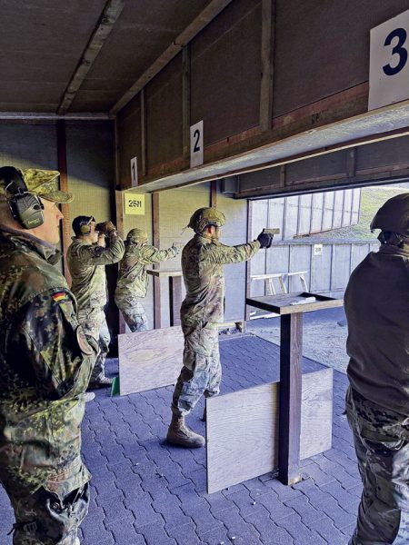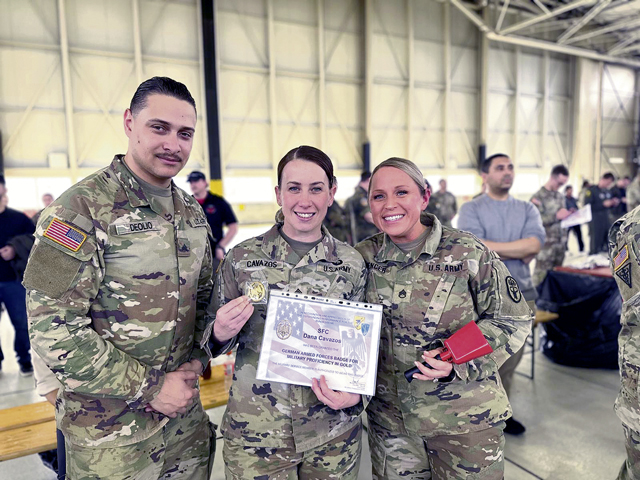 Landstuhl Regional Medical Center Soldiers participated in the German Armed Forces Badge (GAFPB) qualification at Ramstein Air Base, Germany, March 17-21, 2024. The multinational event tested participants on a ruck march, swim, physical fitness assessment, and weapons qualification, with Soldiers earning awards in bronze, silver or gold based on their performance. Originally introduced in 1971, the GAFPB is one of the few foreign military awards authorized for wear by U.S. service members, recognizing excellence in physical and combat readiness. (Courtesy Photo)