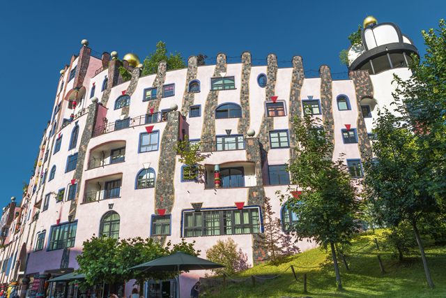 The Grüne Zitadelle, or Green Citadel, was built in 2005 and designed by Austrian architect Friedensreich Hundertwasser, who believed in the close relationship between a building’s architecture and the health and happiness of its inhabitants.