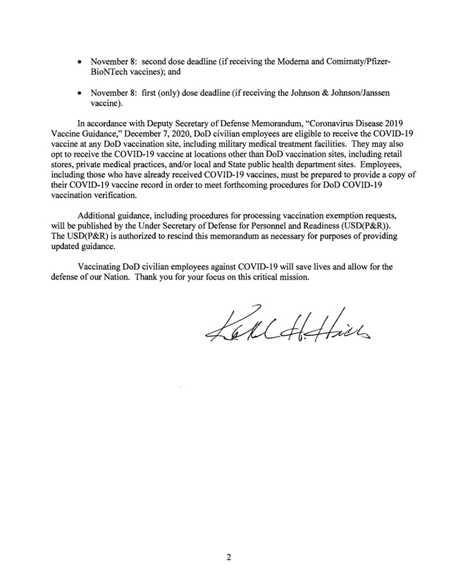 Mandatory Coronavirus Disease 2019 Vaccination of DoD Civilian E