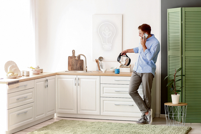 Man,With,Mobile,Phone,Pouring,Hot,Boiled,Water,From,Electric