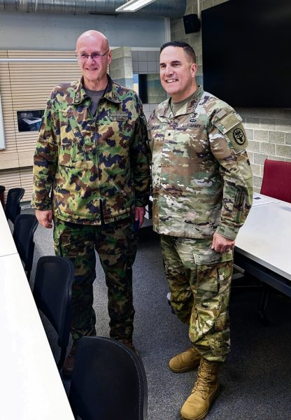 BERN, Switzerland — U.S. Army Brigadier General Roger Giraud, commander of Medical Readiness Command, Europe, and command surgeon for U.S. Army Europe and Africa, along with a team of U.S. Army medical leaders and planners from Medical Readiness Command, Europe and the 68th Theater Medical Command, traveled to Switzerland Apr. 28-30, where they conducted a key leader engagement with Major General Andreas Studebaker, the Swiss Army Surgeon General and members of his staff.