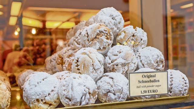One of the best attributes of Rothenburg is the location. Because it borders Swabia and is just inside Bavaria, the menus are always superb. You will be delighted to know most menus include Maultaschen and Jaegerschnitzel with fries and gravy. Another great treat are these pastry balls that are wrapped several times with layers of dough and either covered or tossed in brown sugar and cinnamon. YUM!