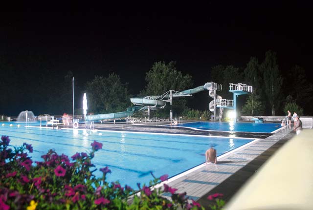 The Ramstein-Miesenbach union community administration office is announcing that its public swimming pool Azur will offer its second midnight swimming Saturday. Due to the high temperature forecast, the outdoor pool will stay open until midnight. The indoor pool will close at 10 p.m. By 9:30 p.m., visitors need to bring their clothes and other items from the indoor area to the outdoor area.