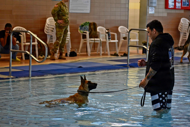 “We [Veterinary Medical Center Europe] are bringing the MWDs together to do an enrichment event to get them familiar with aquatics, as many of them have not been in water before,” Peoples said.