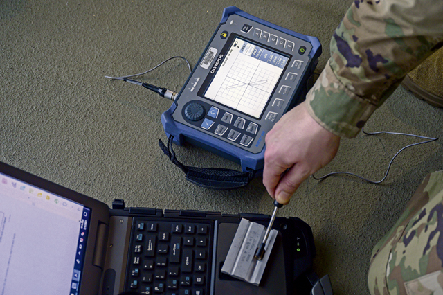 U.S. Air Force Tech. Sgt. Zachary Pierce, 86th Maintenance Squadron non-commissioned officer in charge of nondestructive inspections, prepares an eddy current ribbon probe for inspection at Ramstein Air Base, Feb. 5. NDI Airmen are able to inspect C-130J Super Hercules, C-17 Globemaster III and C-21 aircraft on Ramstein.