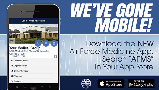 The new app is a mobile version of the AFMS website, and lets users customize their experience based on the Air Force military treatment facility they use. This way, patients can get information about clinic hours, find phone numbers and get other valuable information about the MTF where they work or get care.