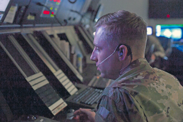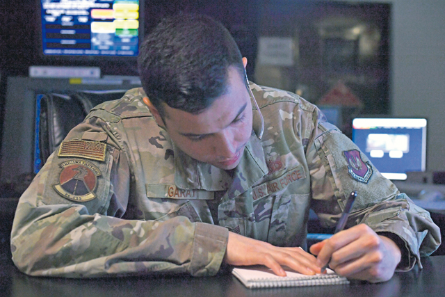 U.S. Air Force Staff Sgt. Christopher Garay, 86th Operations Support Squadron air traffic control watch supervisor, works at Ground Controlled Approach, Ramstein Air Base, Oct. 15. A dual training program implemented by ATC, cross-trains controllers who work in the Tower and GCA. Airmen like Garay, who have completed the training, are qualified to work in both sections of ATC.