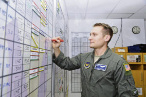 Capt. Mike Thomas, 37th AS central scheduler, said there is never a moment when a team is not on alert.