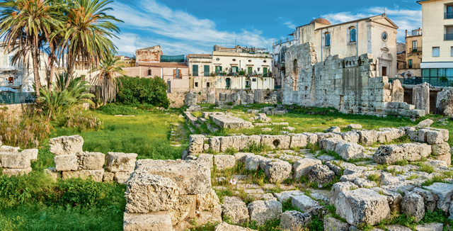 Panoramic,View,To,Ancient,Doric,Temple,Of,Apollo,In,Ortigia