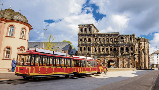 Porta,Nigra,With,Sightseeing,Road,Train,-,Trier,,Germany