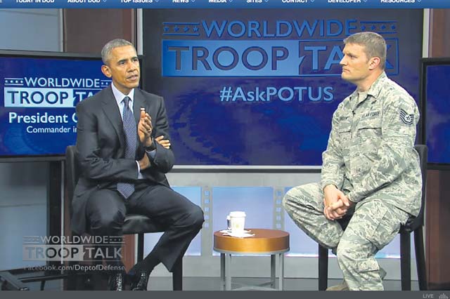 FORT MEADE, Md. — On the 14th anniversary of 9/11, President Barack Obama, in gratitude for military members who’ve served after the nation’s darkest day, hosted a global, multimedia, Worldwide Troop Talk live from Defense Media Activity studios in Fort Meade, Md.