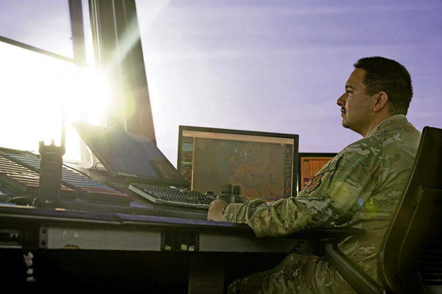In the small room on top of the control tower, a team of Airmen work 24/7 to sequence aircraft and coordinate with host nation partners to ensure safe, uninterrupted flight operations.
