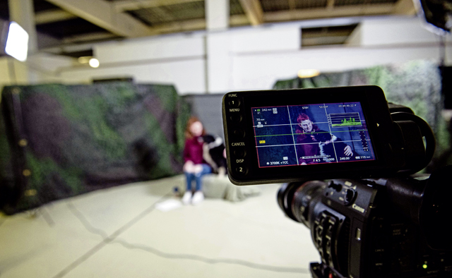 A Public Affairs specialist uses a Canon C200 camera to focus on an actor during a video production on Ramstein Air Base, Dec. 21, 2020. Public Affairs specialists may operate on both sides of the camera, producing and contributing as actors during video productions.