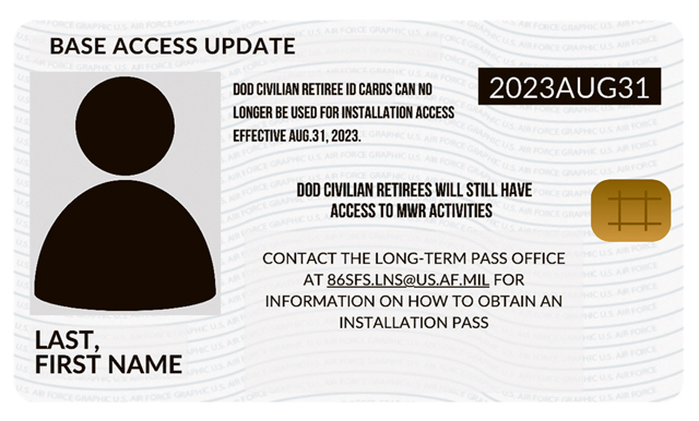 DOD civilian retirees will still have access to Morale, Welfare and Recreation services on Ramstein AB, but must contact the Long-Term Pass Office at 86sfs.lns@us.af.mil to obtain an installation pass.