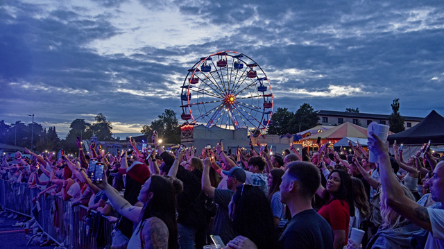 Members of the Kaiserslautern military community cheer at a concert at the Freedom Fest at Ramstein Air Base, July 4. Freedom Fest was held in celebration of American Independence and was hosted at the Enlisted Club parking lot featuring carnival rides, games, food vendors, live musical entertainment and a fireworks show.