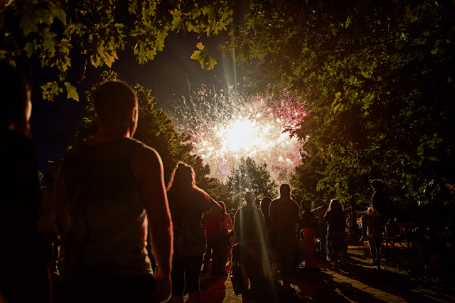 Members of the Kaiserslautern military community watch fireworks at the Freedom Fest at Ramstein Air Base, July 4. The Freedom Fest was held in celebration of American Independence and was hosted at the Enlisted Club parking lot featuring carnival rides, games, food vendors, live musical entertainment and a fireworks show. Photo by Airman 1st Class Tabatha Chapman