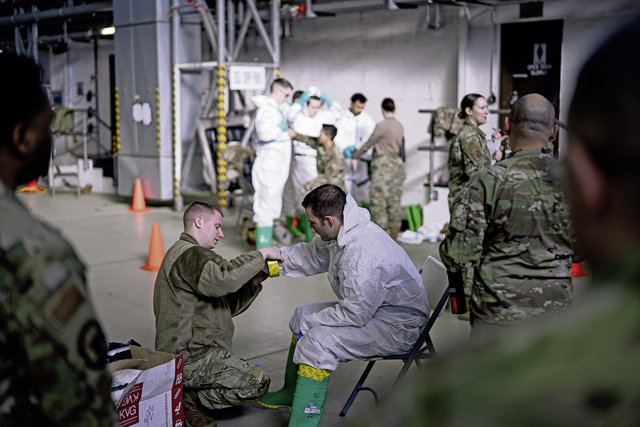 The squadrons worked together during leadership seminars, tabletop exercises and simulated events as part of the radiological detection and decontamination exercise.