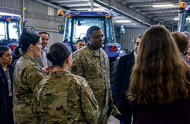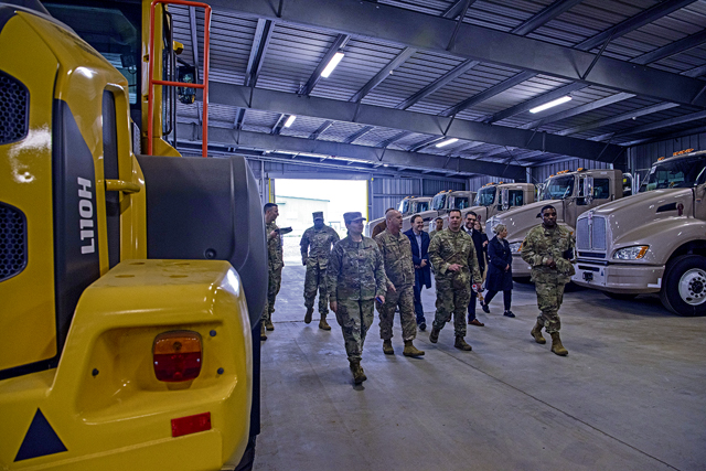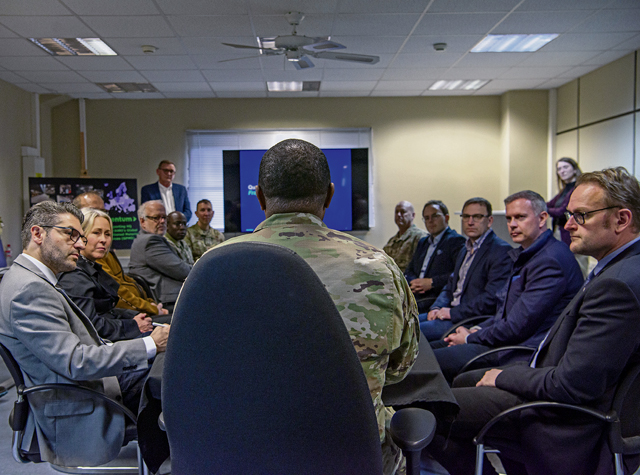 U.S. Air Force Brig. Gen. Otis C. Jones, 86th Airlift Wing commander, stands with civic leaders of the Kaiserslautern Military Community during a tour of a Department of Defense storage facility in Pirmasens, May 12. Ramstein AB leadership recently hosted several German dignitaries during a tour of the facility to provide a comprehensive overview of its strategic value to the U.S. Air Force and overall global security, as well as its potential economic benefits to the local communities. Photos by Airman 1st Class Tabatha Chapman