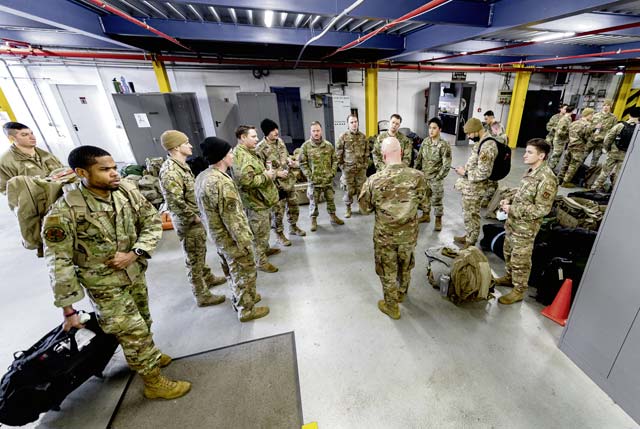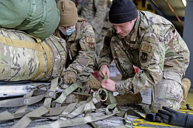 U.S. Air Force Airmen assigned to the 435th Contingency Response Group at Ramstein Air Base, prepare to deploy, Feb. 3. The deployment of these forces enables the effectiveness of our joint and international partners, and shows that our commitment to our NATO allies and partners is ironclad. Photo by Airman 1st Class Edgar Grimaldo