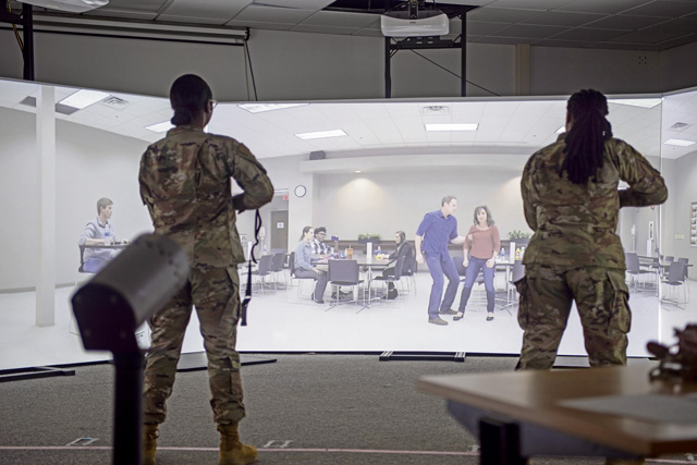 U.S. Air Force Airman 1st Class Mary-Alice Prosper, 86th Air Wing Military Justice paralegal, left, and Airman 1st Class Shereika Mitchell, 86th Maintenance Group schedule analyst, participate in a training simulation at Ramstein Air Base, Oct. 22. Photo by Senior Airman Vaughn Weber