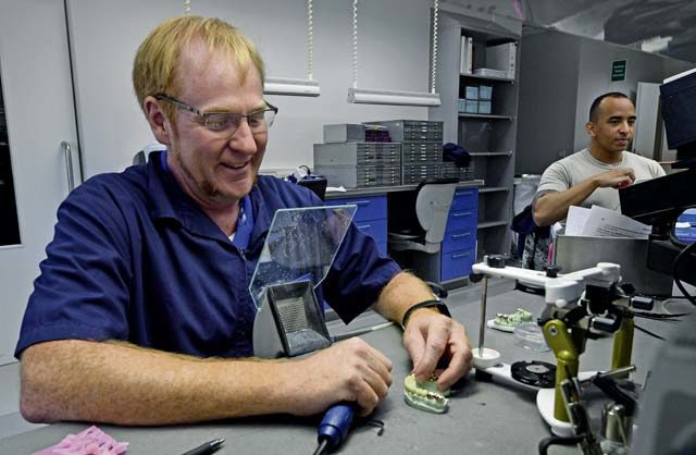 For the Army, the only area dental lab is in the U.S., which services both stateside and overseas Soldiers and their families. A large workload for the stateside lab equals slower turnaround times which is added to the time it takes to ship molds and appliances to the U.S. and back. A typical turnaround time for the Army lab in the U.S. is 45 days, while the Ramstein ADL can typically complete a project in 20 days.