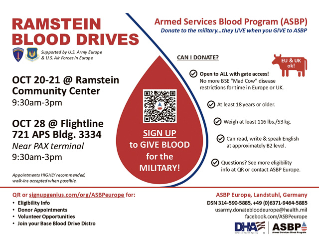 Ramstein Blood Drives OCT 20-21 & 28 by ASBP Europe