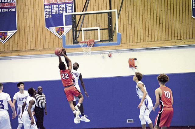 Trailing 42-39 and knowing that Ramstein senior Jake Fraley and junior point guard JJ Little had four fouls, the Raiders started the fourth quarter with a steal and momentum. But, someone poked the bear and the hibernation was over. As is their trademark, the Royals took it out of cruise mode and went on a wild run with Jones scoring on a coast-to-coast layup, freshman Elisha Williams nailing two jumpers and Eaves drilling a three from the corner. Kaiserslautern Coach Corey Sullivan called a time out and the game was locked up. The Raiders Kendryk Jenkins hit a three, but it was all Royals down the stretch with Jones putting the dot on the exclamation point with a two-handed slam dunk. Ramstein outscored Kaiserslautern 42-23 in the second half.