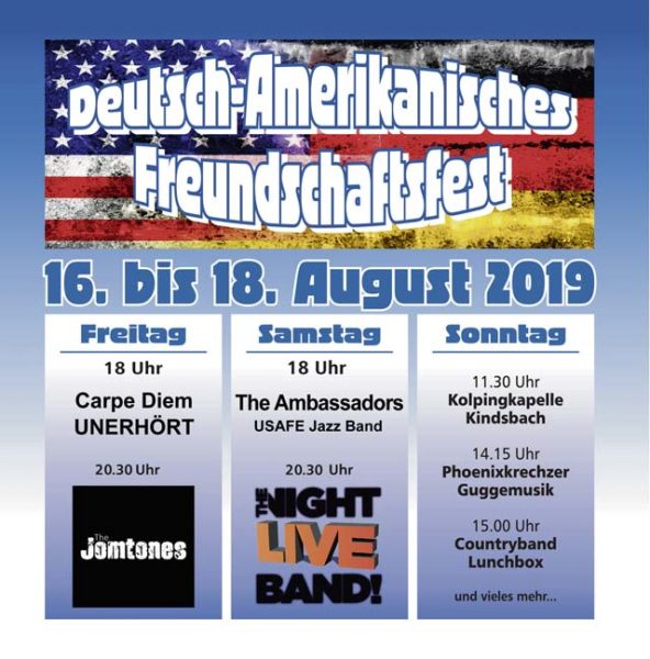 Next weekend the German-American friendship will be celebrated with a big fair. The fair takes place at John-F.-Kennedy-Platz in the center of Ramstein. A large variety of food and beverages will be offered, as well as culinary specialties from both countries.