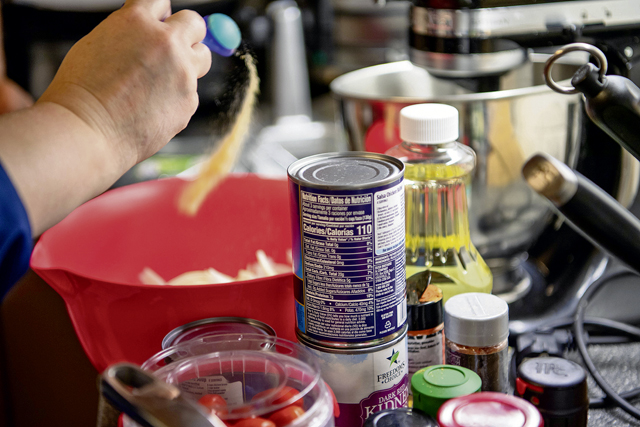A Deployment Transition Center participant seasons fajitas for a cooking demonstration held by Health Promotions at Ramstein Air Base, Germany, Dec. 12, 2022. The goal of these cooking demonstrations is to encourage individuals to lead healthy lifestyles and improve mission readiness and productivity of the military community. (U.S. Air Force photo by Airman 1st Class Jordan Lazaro)