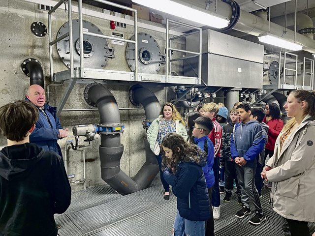 Ramstein intermediate school kids visiting the local water plant to learn about the different processes which turn raw water/groundwater into drinking water.
