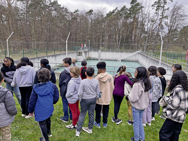 Ramstein intermediate school kids mesmerized by big pool filled with drinking water at the local drinking water plant during guided tour.