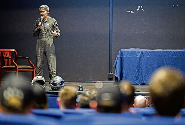 U.S. Air Force Maj. Gen. Jeannie M. Leavitt, Department of the Air Force Chief of Safety, briefs motorcycle riders in the Kaiserslautern Military Community on the importance of riding safety at Ramstein Air Base, May 5. The annual motorcycle safety training teaches riders critical skills to maintain situational awareness and how to anticipate potential hazards, such as keeping an eye on traffic, weather, road conditions and other motorists.