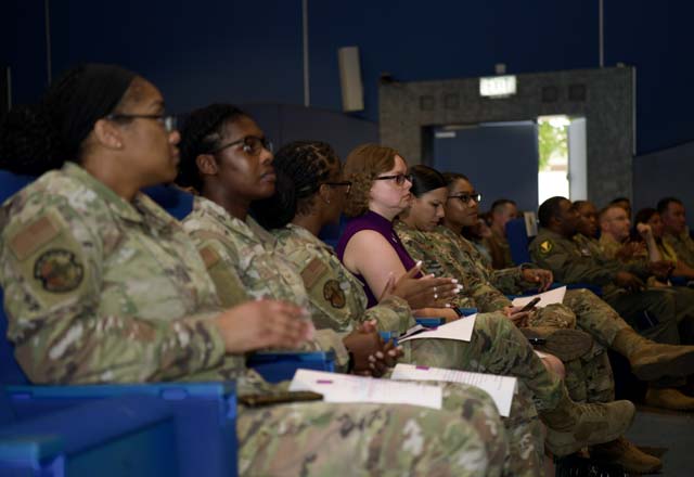 U.S. Air Force Airmen assigned to the 86th Airlift Wing and members of the Kaiserslautern Military Community attend the KMC Women’s Empowerment Summit at Ramstein Air Base, Aug. 26. The annual summit provides a platform to discuss various ways to empower women in the workplace.