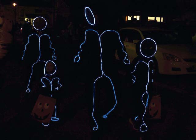 A family trick-or-treats in lighted costumes for Halloween Oct. 31 on Ramstein Air Base. Members of the Kaiserslautern Military Community had the opportunity to visit a Trunk-or-Treat event, a haunted trail, and trick-or-treat in family housing.