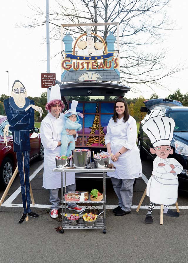 Staff Sgt. Nicolaus Eddy, 86th Maintenance Squadron test measurement diagnostic equipment technician, his wife, Melissa, and his daughter, Harper, show off their themed trunk during a Trunk-or-Treat event Oct. 31 on Ramstein Air Base. Members of the Kaiserslautern Military Community volunteered their vehicles and time to help make the base’s annual Trunk-or-Treat event a success.