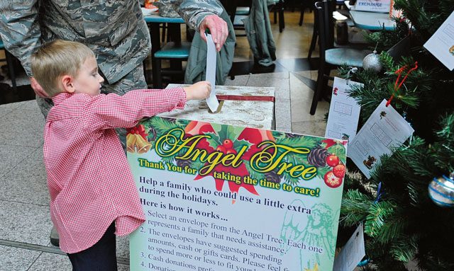 The Angel Tree program is a First Sergeant Council outreach initiative that provides monetary assistance to Airmen and their families. The program provides assistance to help Airmen through unforeseen financial difficulties, such as travel expenses for them or their families due to medical emergencies or even toys for their children during the holiday season.