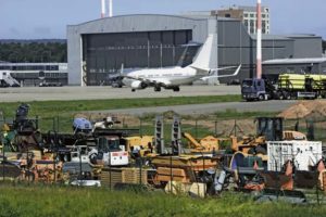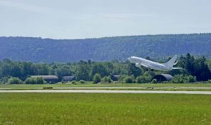 The last C-40B assigned to the 76th Airlift Squadron takes off at Ramstein Air Base, June 7. The Air Force decided to consolidate the C-40B mission to one location, Joint Base Andrews, Maryland.