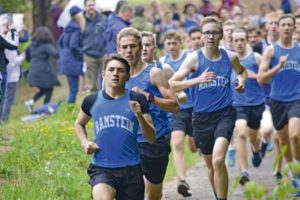 It was like a sea of blue as Ramstein dominated the boys portion of the six-team Ramstein cross country meet. Three-sport star Connor Mackie led the field from start to finish to win the matchup. Ramstein dominated the event, placing in 15 of the top 18 spots. They had 21 points to runner up SHAPE’s 68 points and Brussels’ 88 points. Mackie completed the 5k (three mile) course in 17:57.05. He finished eight seconds in front of SHAPE runner Sam Dowdell. Ten of the next 12 places were Ramstein runners. Ben Brewster was third and Gideon Zaug was fourth. Aiden Stamp of Lakenheath was fifth, followed by Blake Peterson, Max Farqueron, Johnathan Jantz, Ezra Letz, Jacob Adams, Jacob Golden and Everett Majer. The top Baumholder runner was Jacob Cruz in 22nd place.